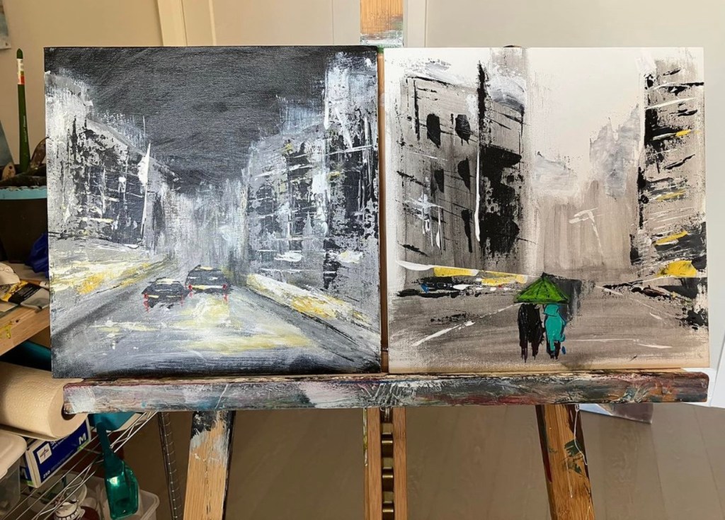 The paintings below are for sale at Tribeca Coffee Co. in downtown Burlington, ON.